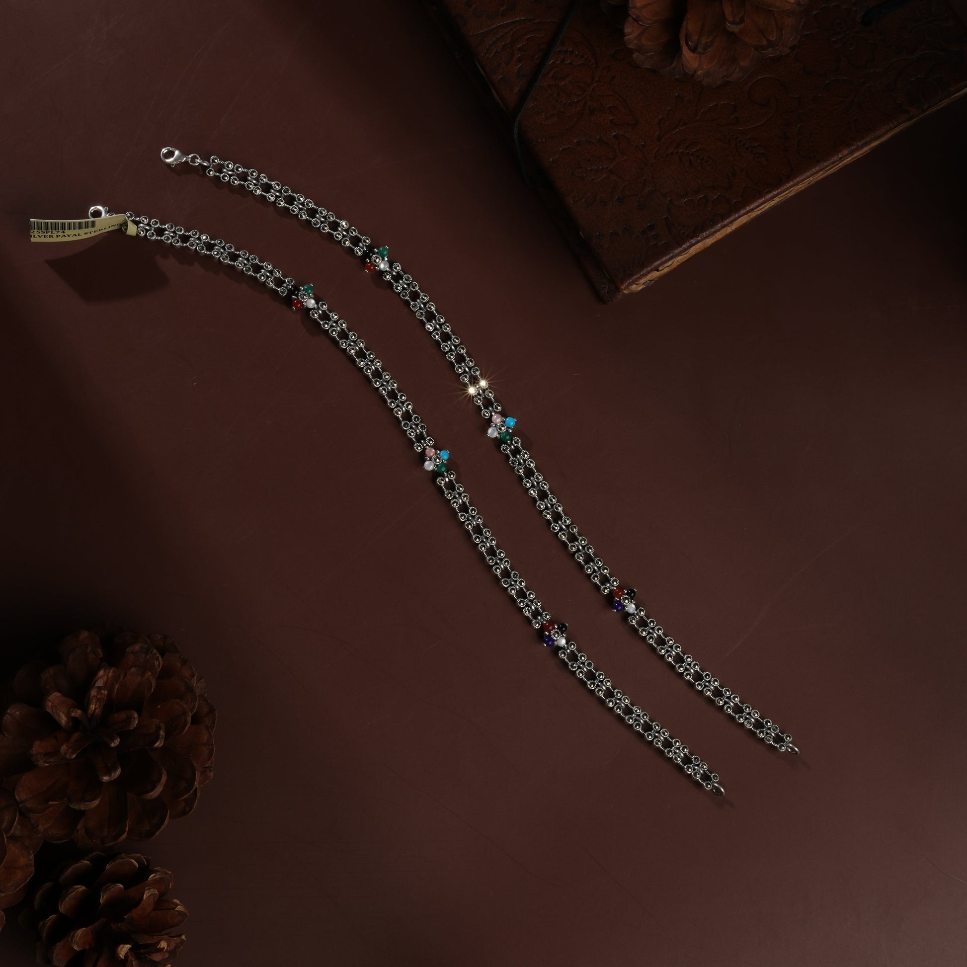 Sterling Silver Double String Marcasite Antique Payal